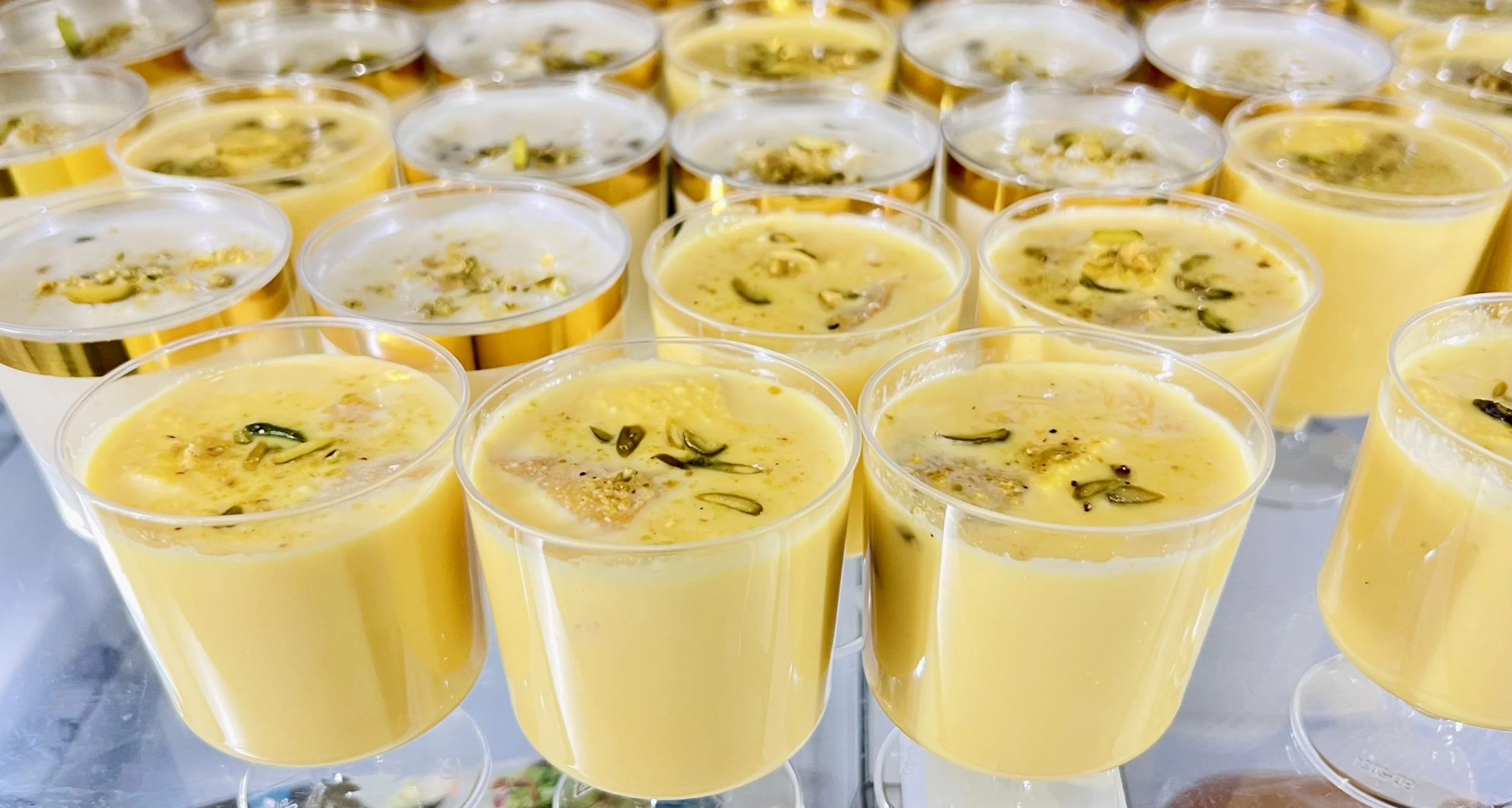 Cardamom-infused flavors of traditional Ras Malai meets the silky texture of Italian panna cotta, topped with pistachio and saffron